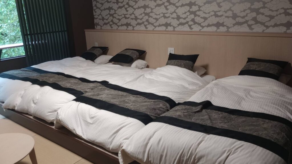 ↑泊った部屋はこんな感じです。2人で行ったのですが、お布団はすでに4つ引いてありました。