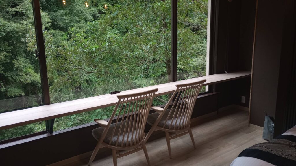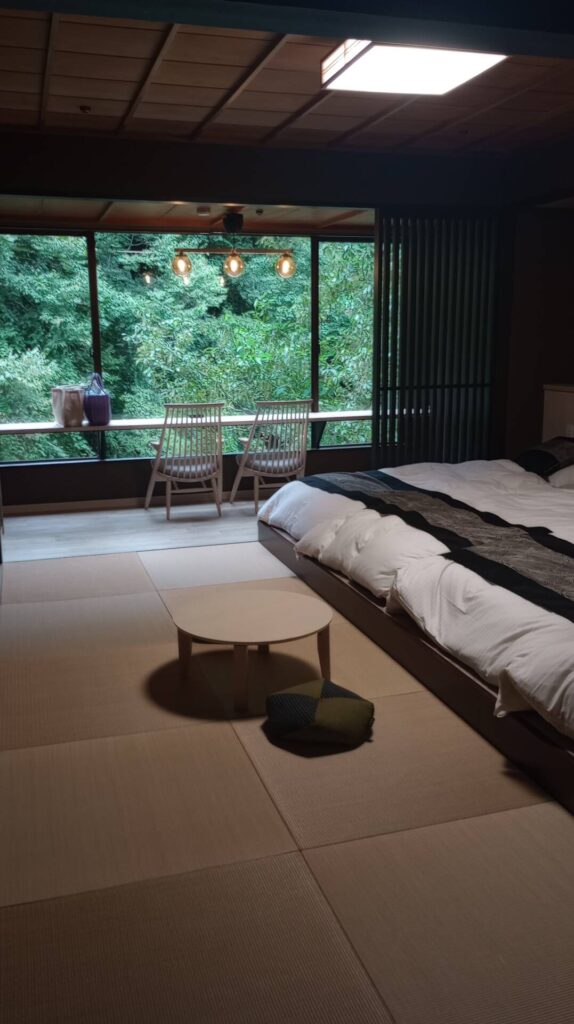 シモンズのマットレスタイプのお部屋で、部屋の下には川が流れていました。