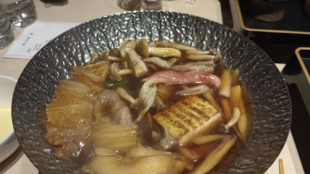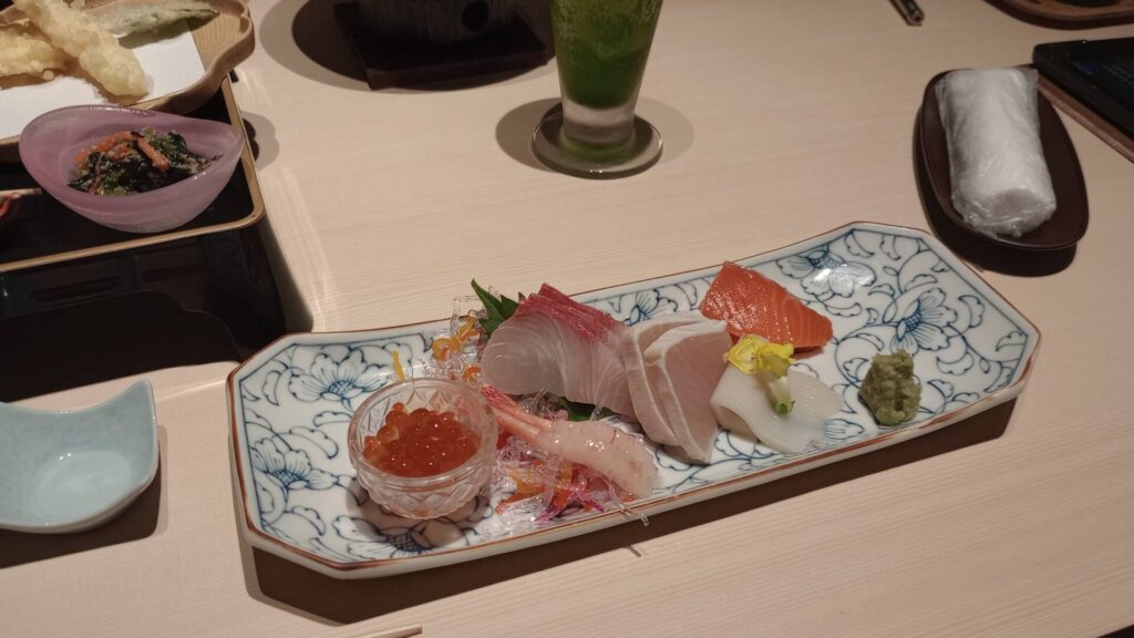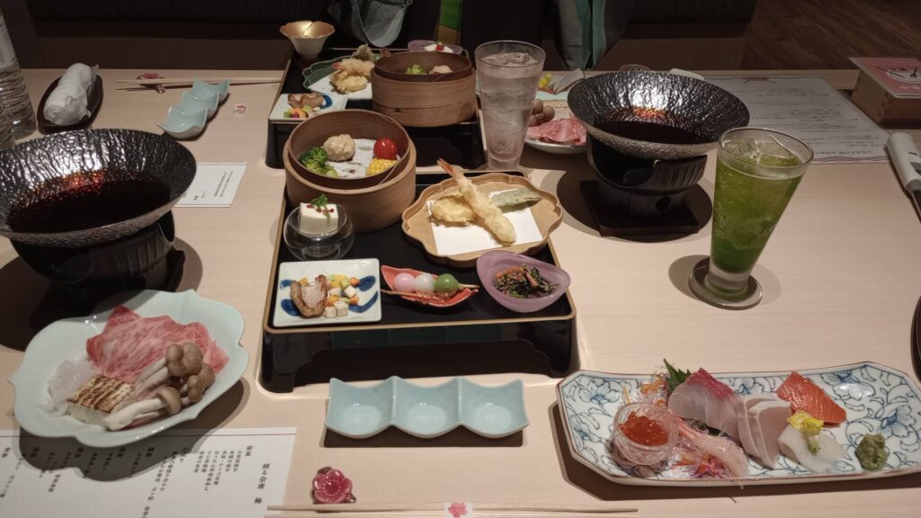 最初に、お刺身とすき焼きが運ばれ、後は、自分で好きなものを取りに行くスタイルです。