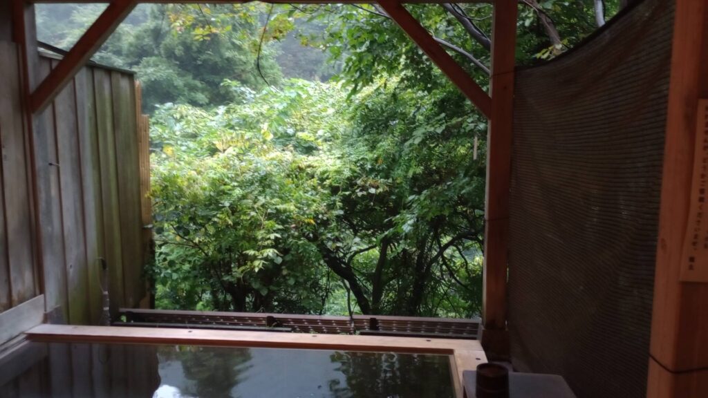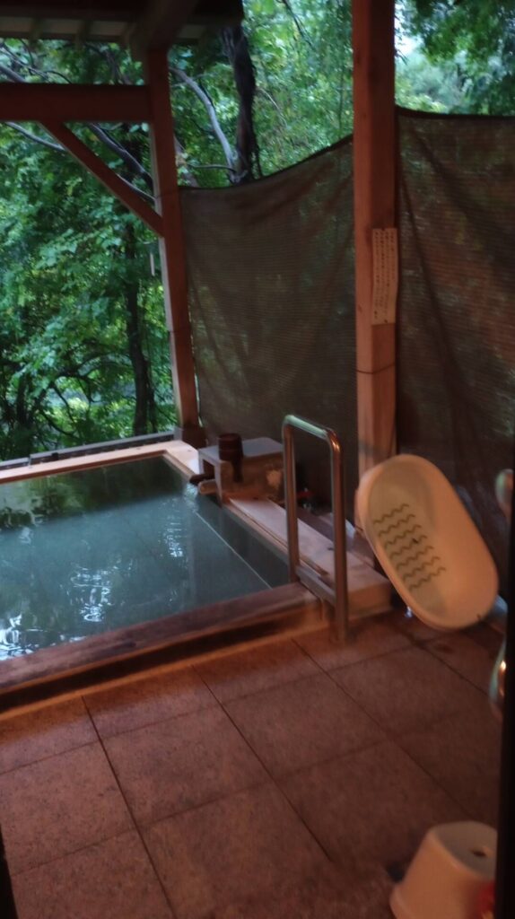 予約した大きな方は、夜に、空いていたので、朝も小さな露天風呂に入りました。