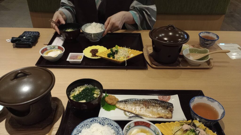 ↑朝ごはんは、メインを 焼きサバ・豚の生姜焼き・海鮮丼から選びます。