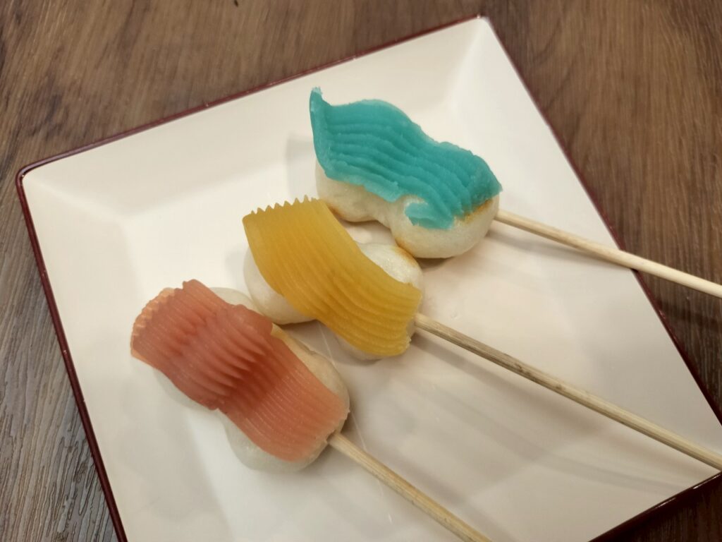 ここは、体験がいろいろできて、お団子を焼いたり、おせんべいを焼いたり、お抹茶をたてたりと、楽しく過ごせます。
